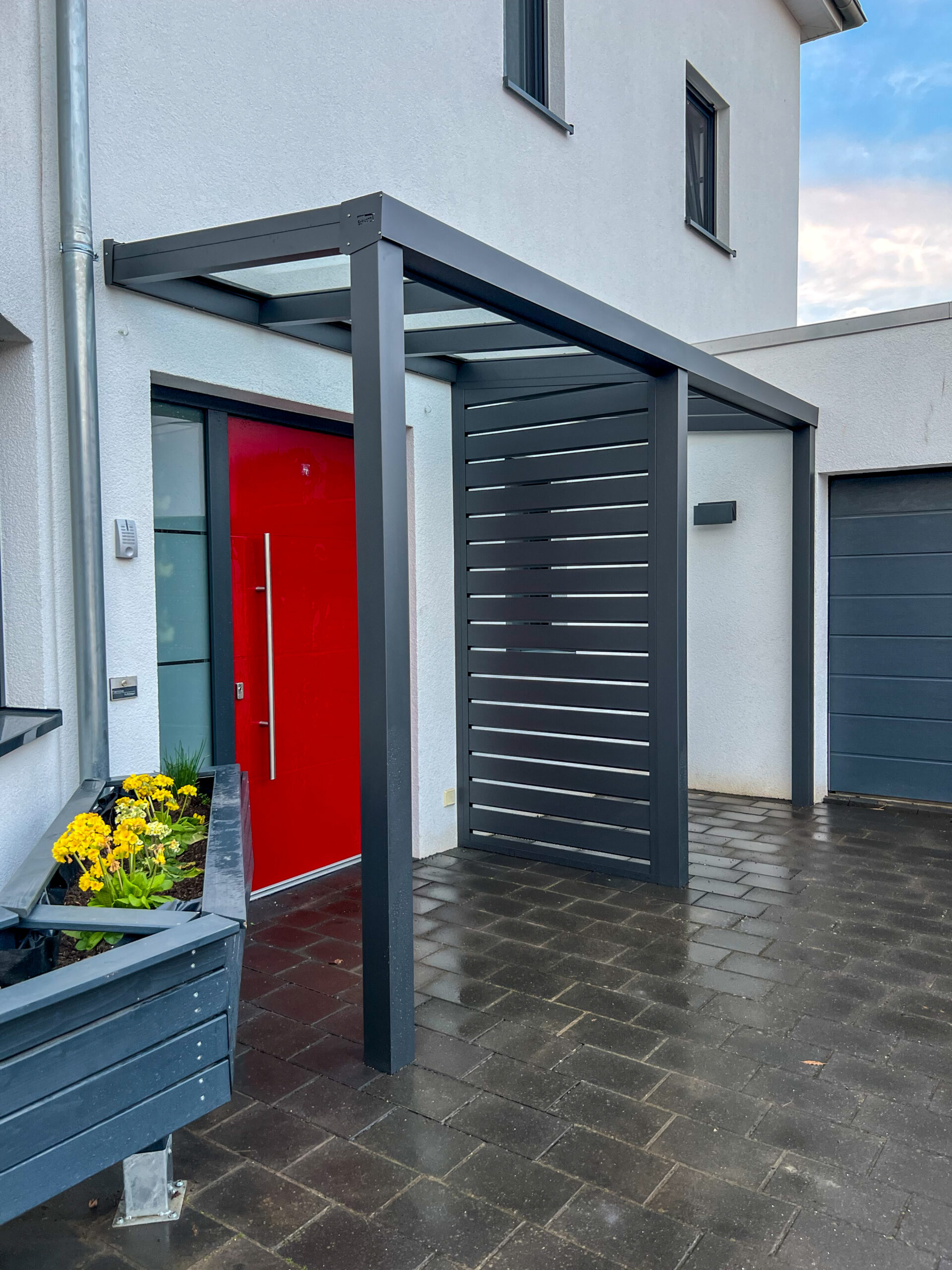 Mit einer Seitenwand sind Sie besser vor allen Arten von Wetter geschützt. Gerade in einem Eingangsbereich sorgt eine Seitenwand zum Beispiel dafür, dass es auch bei windigem Wetter nicht in die Tür reinregnet. Oder Sie verleihen Ihrem Carport und damit auch Ihrem Auto mehr Schutz, indem Sie aus einer einfachen Überdachung mit einer oder zwei Seitenwänden einen von allen Seiten geschützten Bereich machen. Steigen Sie auch bei Starkregen geschützt aus Ihrem Auto aus, ohne hektisch zu werden. Eine Terrassen-Seitenwand hat viele Vorteile, denn Sie macht Ihre Terrasse zu einem Wohlfühlbereich mit mehr Privatsphäre, besonders wenn Sie zum Beispiel an einer Straße wohnen oder nicht von den Nachbarn beobachtet werden wollen.