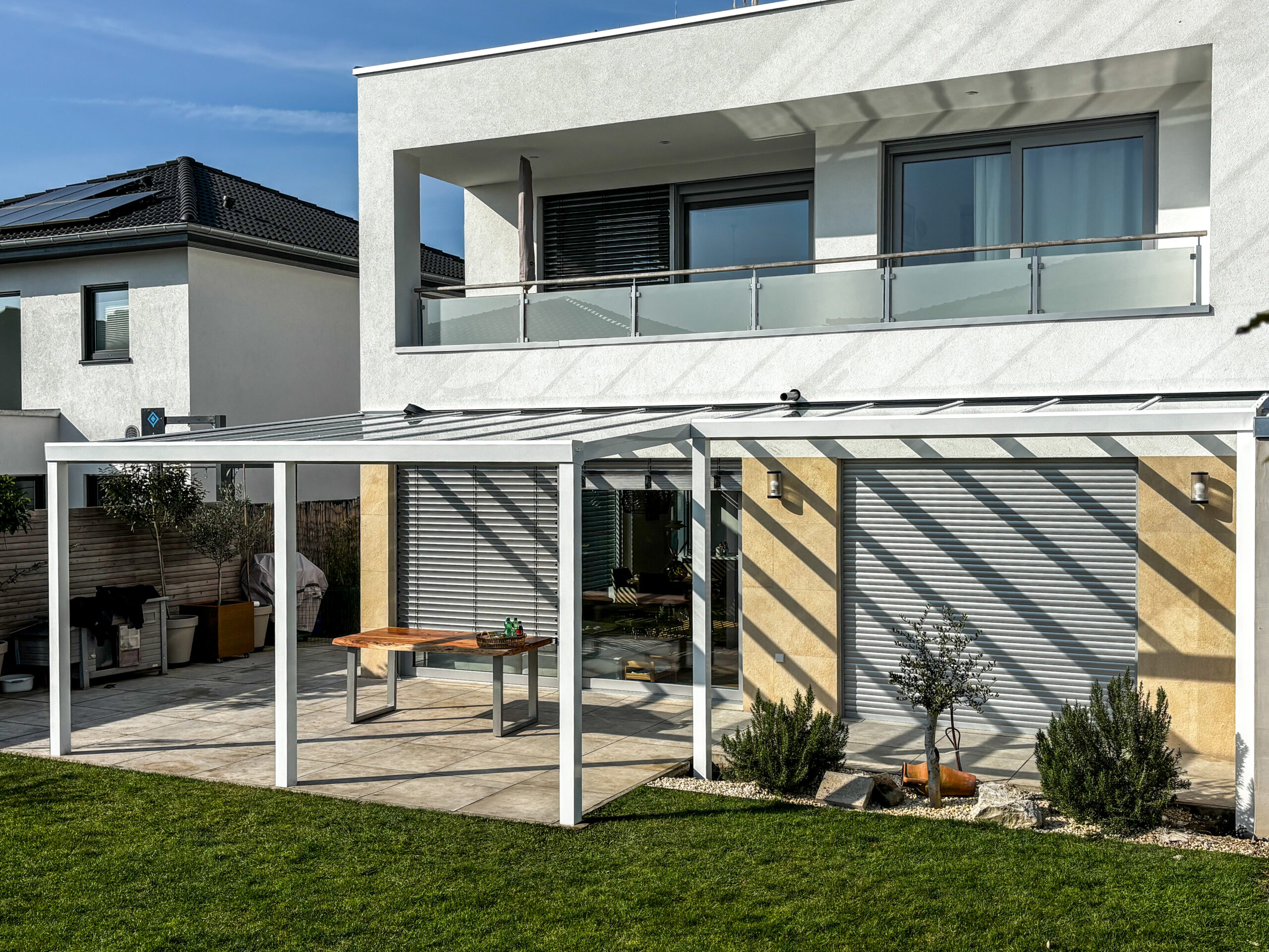 Individualität ist Ihnen wichtig? Mit unserem Baukastensystem können Sie Ihre neue Terrassenüberdachung so gestalten, dass Sie perfekt zu Ihrem Haus und Ihren Anforderungen passt. Zu den wichtigsten Ausstattungsmöglichkeiten gehören die Installation einer Schiebeanlage, ein optionaler Geräteraum, Sichtschutzwände aber auch Komfortelemente wie beispielsweise LED-Beleuchtung oder Heizstrahler.